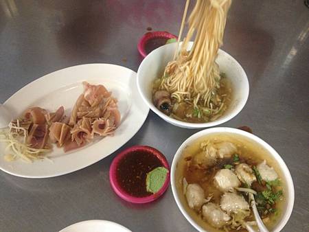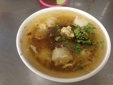 另點了碗虱目魚羹, 看來好像魚丸湯, 看起來好像不多, 不過呢, 往下舀是越舀越多, 應該有家肉漿, 所以吃起來很紮實