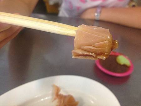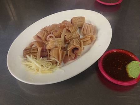最快上來是燙魷魚, 這是小份的$70, 二個人分享很夠了, 飄著很香的魷魚味~~ 一旁附的沾醬也很搭