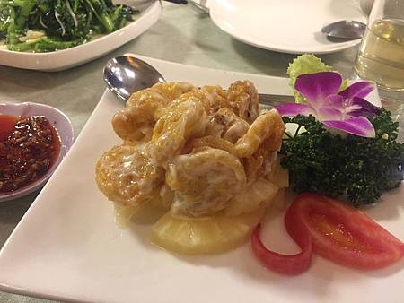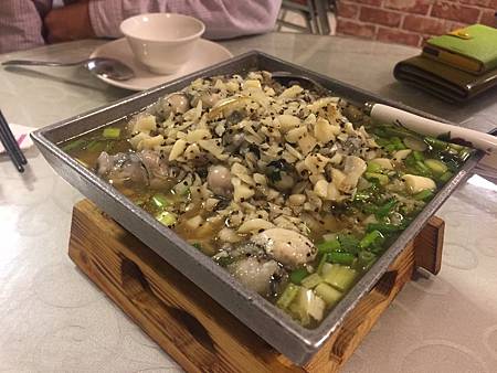 點餐後滿快上菜的, 第一道就來蒜蓉蚵, 這擺盤頗漂亮