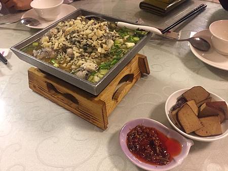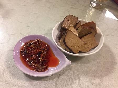 客隨主便, 我不知道這道送上來的熱滷豆干是店家招待或? 一旁的小魚辣椒滿好吃的
