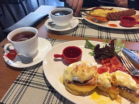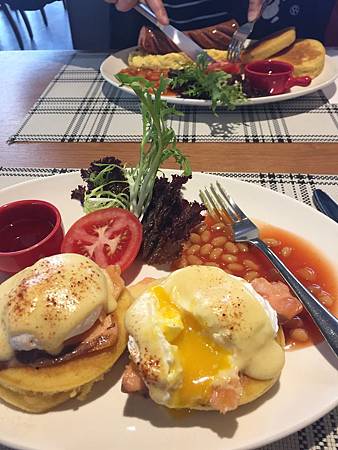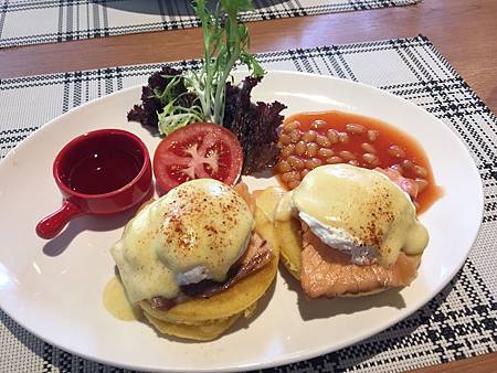 我還是點了鮭魚班乃迪克蛋餐, 這一份, 看蛋看醬, 不錯 (只是我不知道一旁小碟子中的蜂蜜要拿來做甚麼用?)