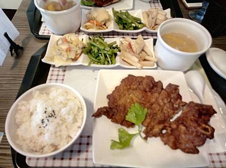 同事大力推荐的炸排骨餐($200)上餐了, 看起來不錯, 但就是份還不錯的簡餐