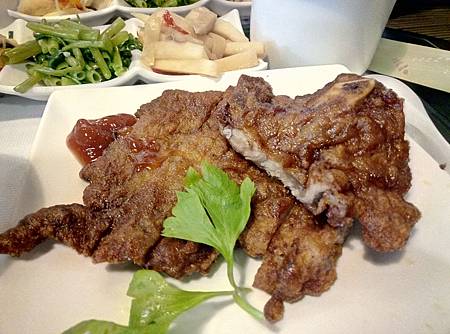 同事推薦的排骨很大片, 炸得也不錯, 但調味不是我喜歡的