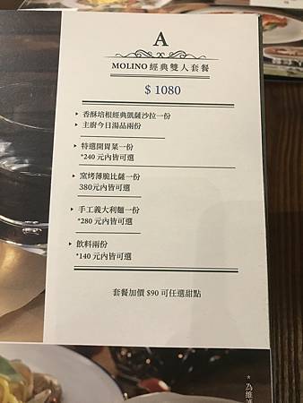 前輩很喜歡約在大江聚餐, 這次約地下一樓美食街, 託他的福我才見識到這已遠遠超出我心目中對美食街的印象, 大江B1有好幾家大餐廳, 最後我們來到這家偏西式的Molino
