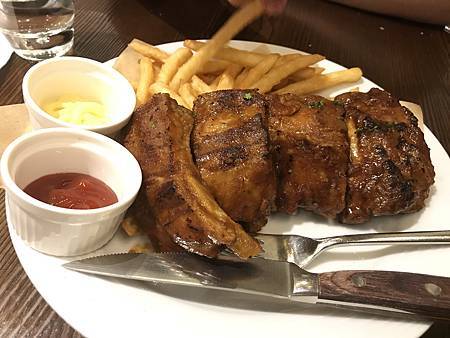 主菜的烤肋排, 哇 這個比Friday的震撼, 切法稍微不同, 更豪邁, 味道和口感非常好