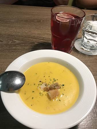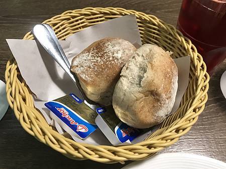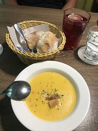 我們都點了套餐, 先上套餐的麵包和濃湯 (都很棒)