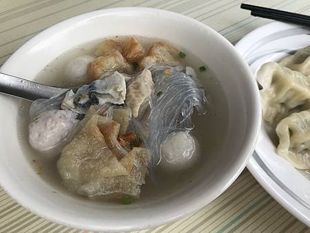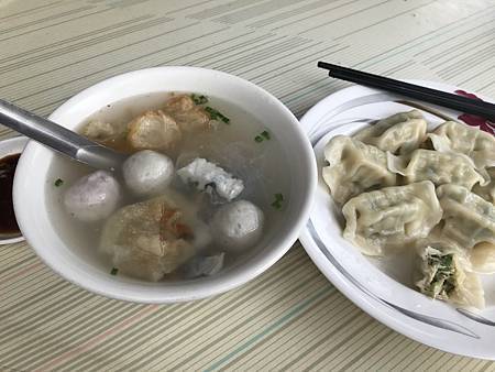 火車抵達台南後就搭公車往南門路, 想先找家魚店吃魚, 如果真沒有就直接到巧克原點啦, 在開山路下車沿著去巧克原點(孔廟)路上看到好大的虱目魚招牌, 而且人很多, 再看不貴, 好 就這一家, 而且還有虱目魚水餃, 這太有趣了