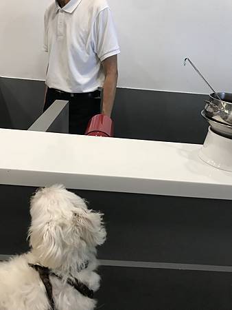店裡的座位只有吧台, 這次老闆讓我帶小犬進來吹冷氣