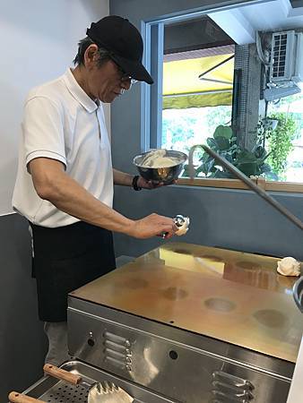 從外面透過窗戶就可看到老闆一個個製做鬆餅的過程