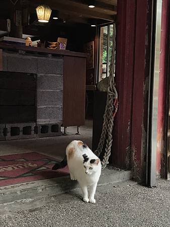 往外準備離開時, 某店家裡緩緩走出一隻貓, 整個的向送客一樣, 好有趣