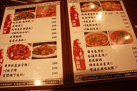 餐點的選擇是很道地的川菜, 價格與一般餐館差不多