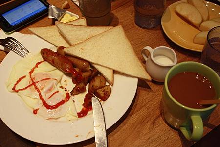 朋友朝思幕想的香腸蛋早餐, 就這樣, $280 (附一杯蜂蜜檸檬水與無限續杯的熱茶/咖啡)