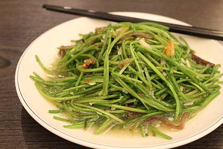一會兒後上來的第一道菜是炒水蓮, 嗯嗯 真的比熱炒店的漂亮很多, 也不錯吃, 原來裡頭有加油蔥酥
