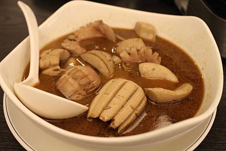 該怎麼形容這味道呢, 它有著很濃的肉燥香, 魚, 芋頭, 魷魚料都有炸過, 耐煮, 吸飽鮮湯的細米粉也好好吃; 不細看的話, 有沒長得像螺肉蒜呢?