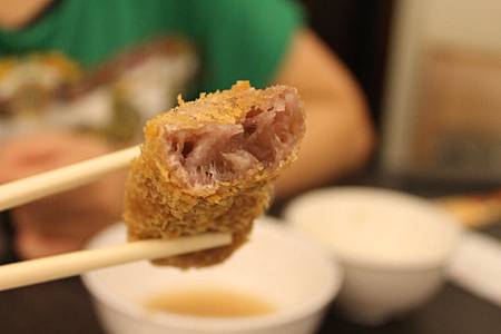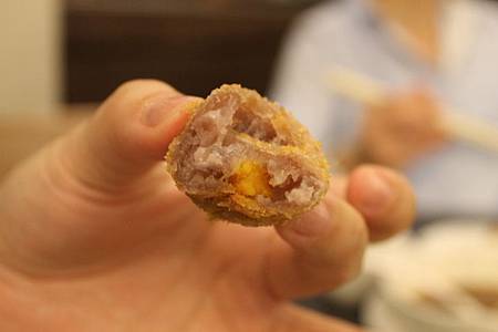 咬下時其實會牽絲(但沒照到啦), 芋泥很細, 不甜, 麵衣不油膩, 好吃